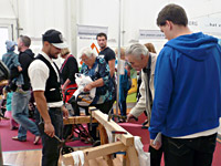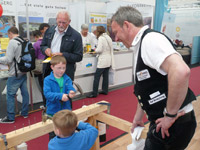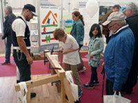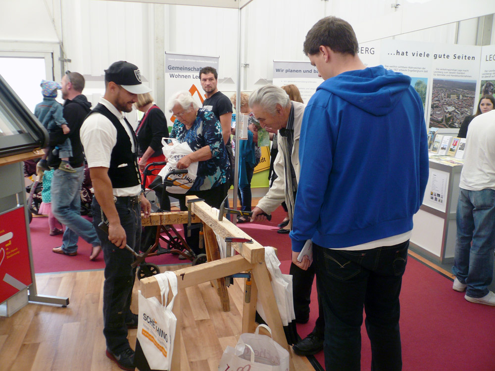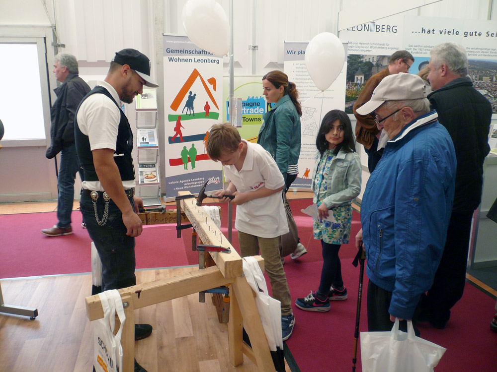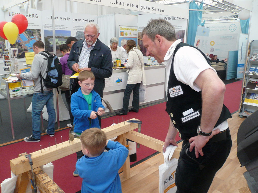 Diesmal hatten wir an unserem Stand einen Nagelbalken aufgestellt, in den die Messebesucher Nägel einhämmern und so ihr handwerkliches Geschick erproben konnten. Ob Groß und Klein – Viele waren mit Begeisterung dabei!