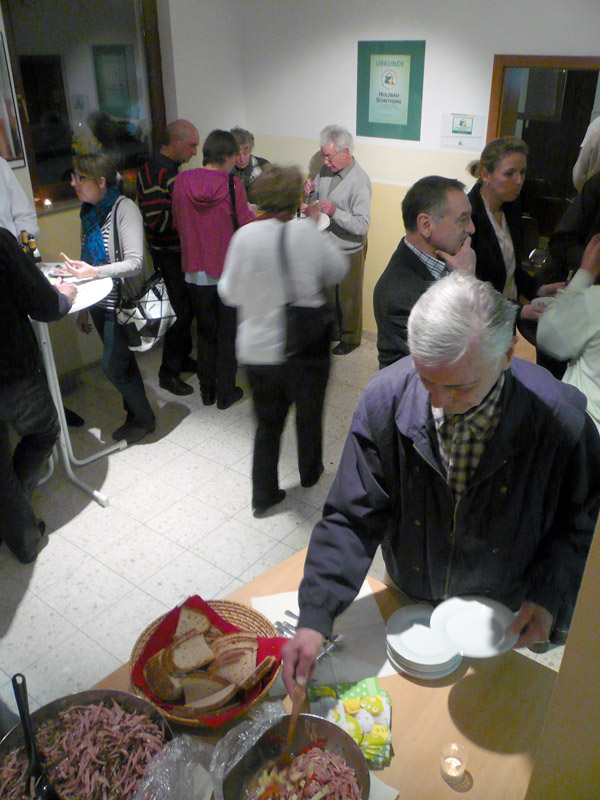 Den Kopf voll neuer Informationen machten sich die Teilnehmer gegen 21 Uhr 15 auf den Heimweg. Ein weiterer erfolgreicher Themenabend liegt hinter uns und wir freuen uns schon auf die nächste Hausmannskost im Herbst. Wir freuen uns, Sie auch dann zu neuen Vorträgen in unseren Büroräumen zu begrüßen. Gerne nehmen wir Ihre Themenvorschläge auf: Einfach an info@scheyhing-holzbau.de mailen!