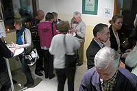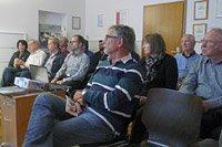 Wir starteten mit dem Vortrag "Holzfassaden im Trend" von Herrn Carsten Hagendorff, der bei der Firma Häussermann für den Außendienst zuständig ist, und zur Illustration viele Musterstücke mitgebracht hatte. Die Teilnehmer sind sich einig, diese Farbpalette bietet etwas für jeden Geschmack. Beim Thema Pflegeaufwand sind unsere Gäste schon skeptischer. Die Firma Häussermann bietet z.B. eine Garantie auf seine Holzfassaden für 5 Jahre. "Muss ich dann schon wieder streichen?", hakt eine Besucherin nach. "Nach etwa zehn Jahren wird ein Neuanstrich meist fällig", so Hagendorff, " aber das ist bei einer Putzfassade – je nach Luftverschmutzung - ebenso der Fall". Daraus zog nun jeder seine persönliche Bilanz und in der nachfolgenden Pause wurde mit den anderen Teilnehmern darüber diskutiert. Bei Schweizer und Schwäbischem Wurstsalat, Zäpfle und Apfelschorle fanden sich lockere Gesprächsrunden zusammen und es ergab sich unter den "Häuslebesitzern" ein munterer Erfahrungsaustausch.